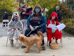 Little Red Riding Hood and the Big Bad Wolf. The dog refused to wear his grandma costume.