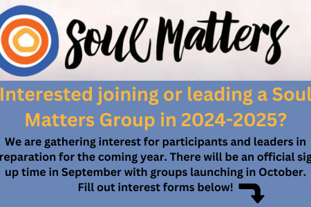 If you are considering participating in(or facilitating!) a Soul Matters Group next year, that please fill out the interest forms below! This will help us more correctly anticipate the correct number of groups and leaders we will need when official sign-ups are launched in September.